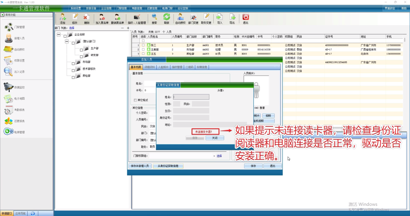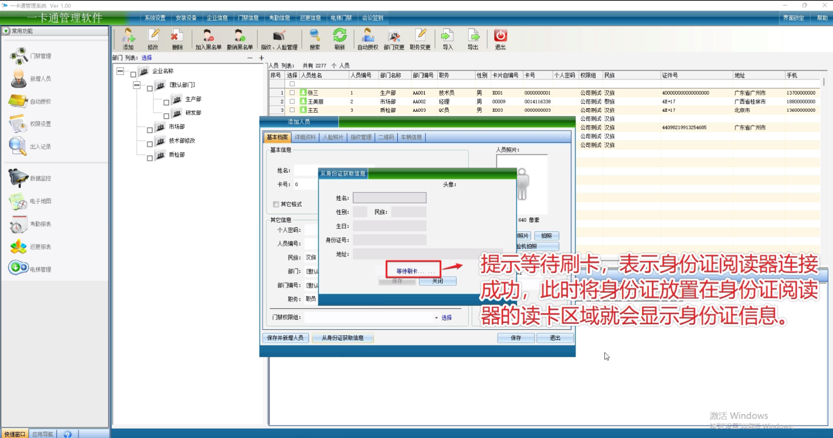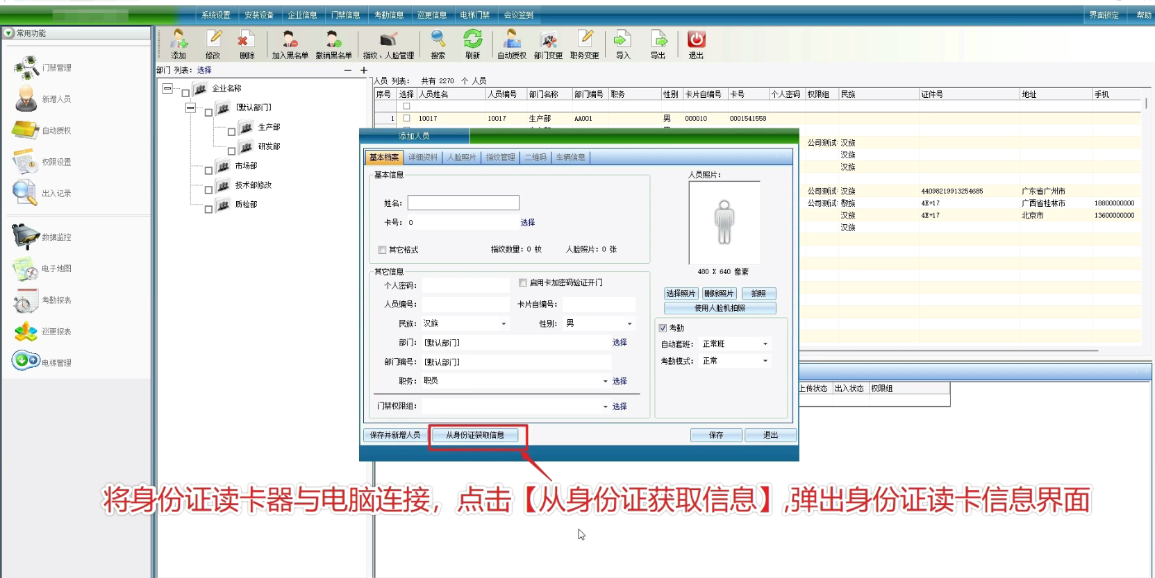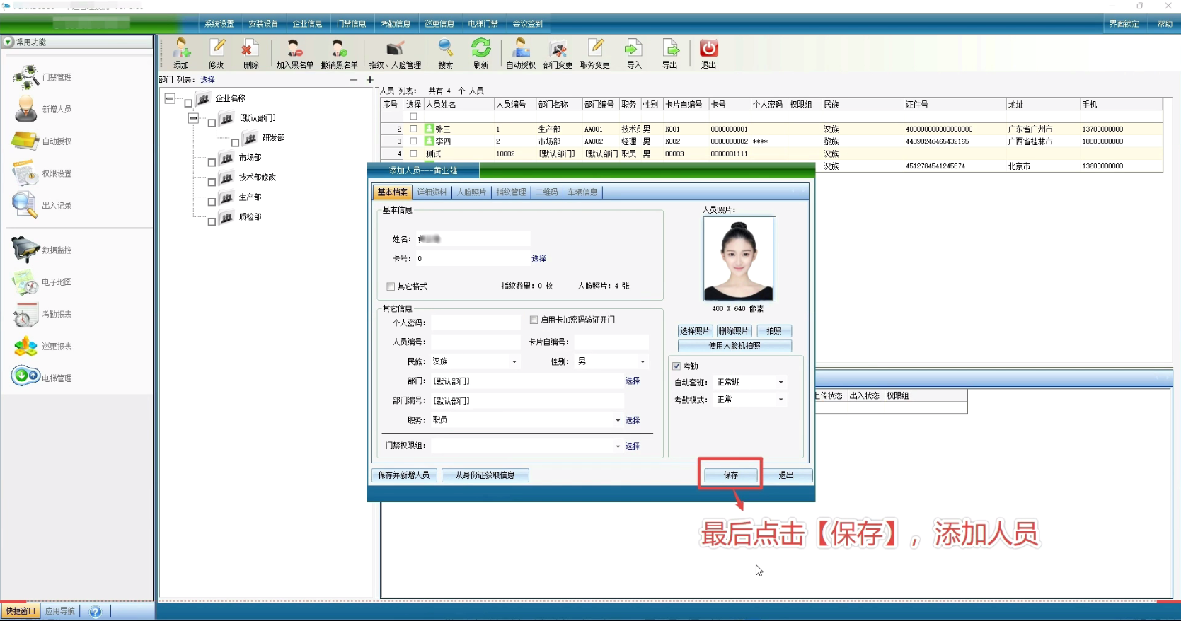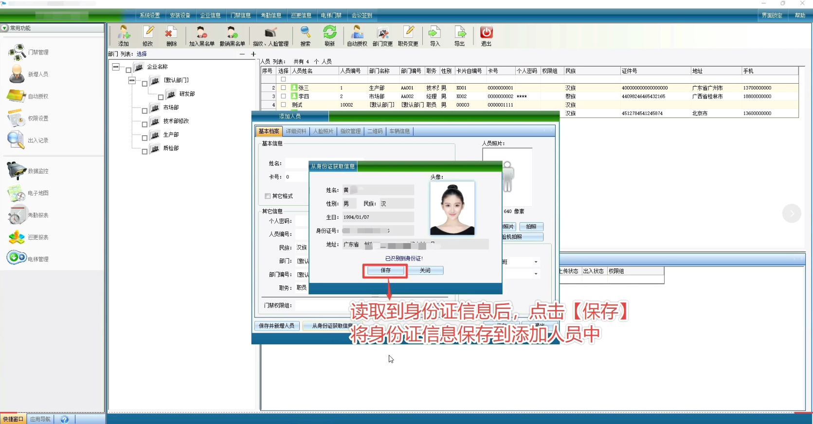 读取到身份证信息后点击【保存】将身份证信息保存到添加入员中