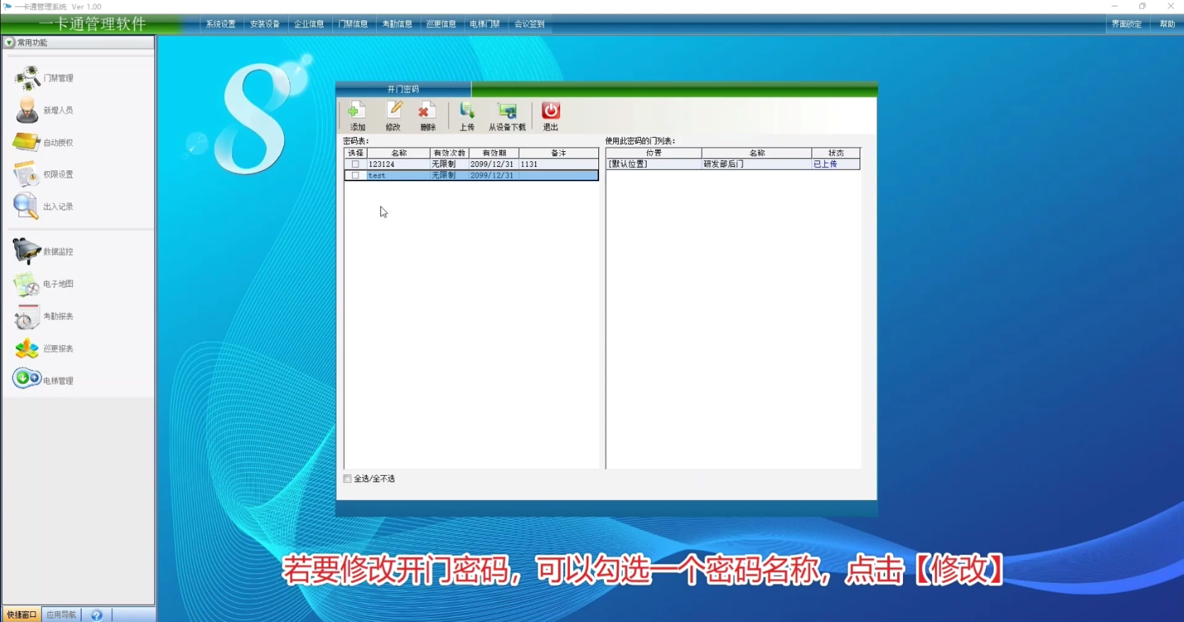 若要修改开门密码。可以勾选一个密码名称,点击【修改]