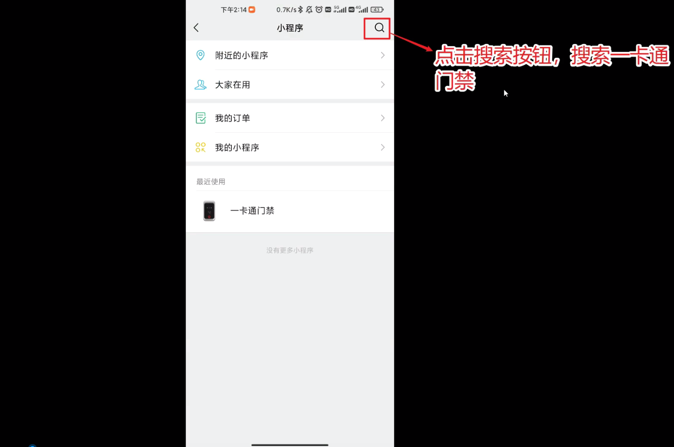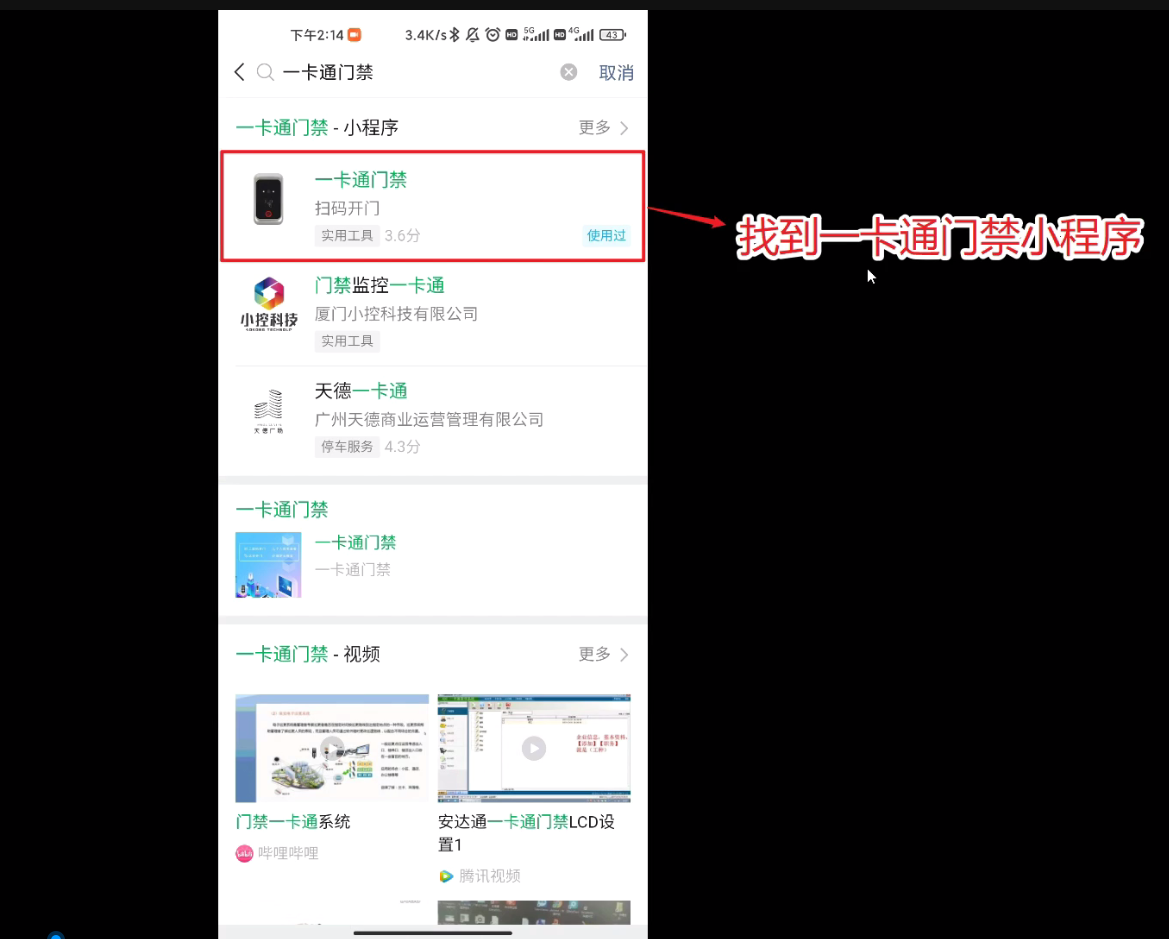 找到一卡通门禁小程序,点击打开程序即可