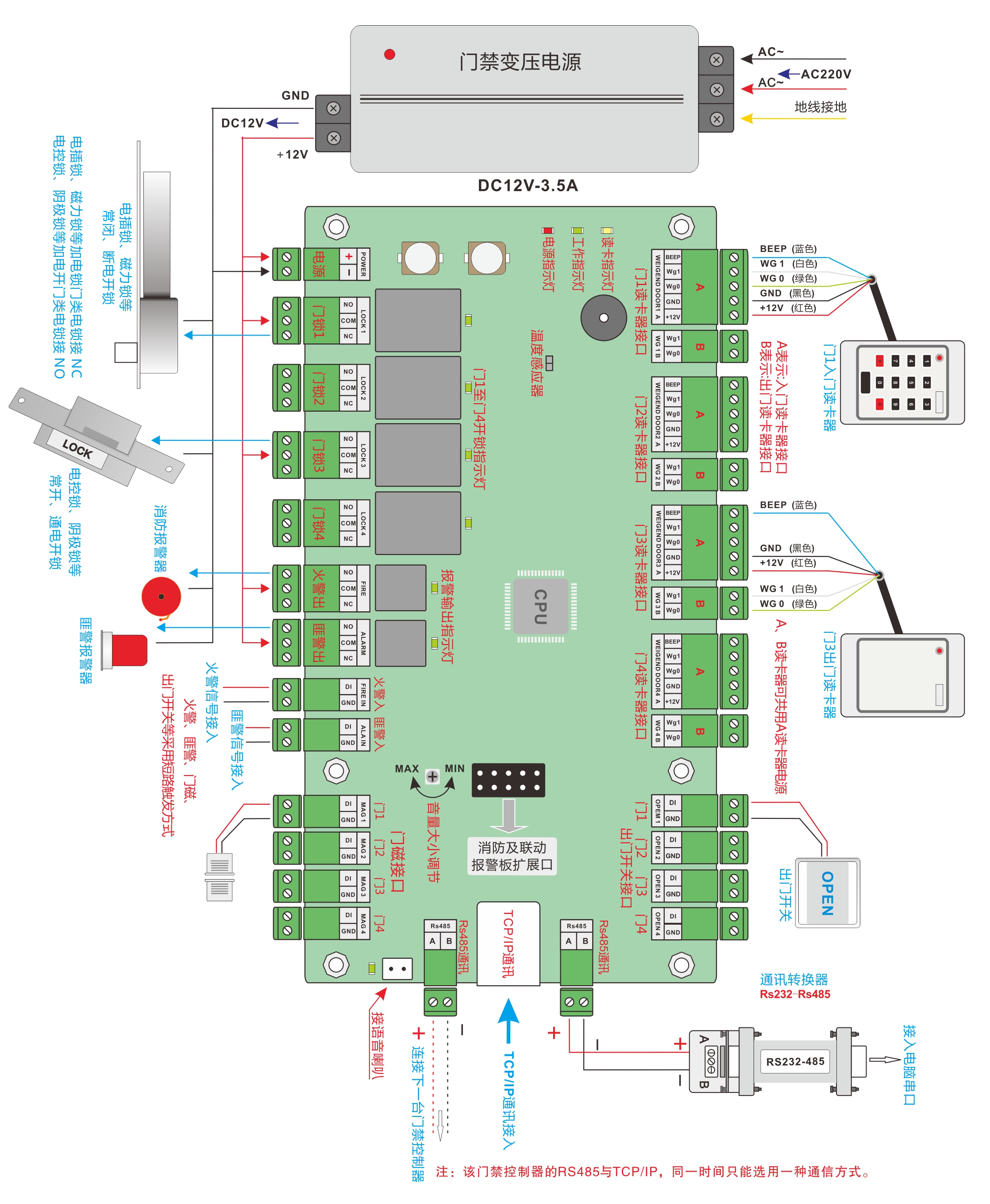 四门高端门禁控制板接线图